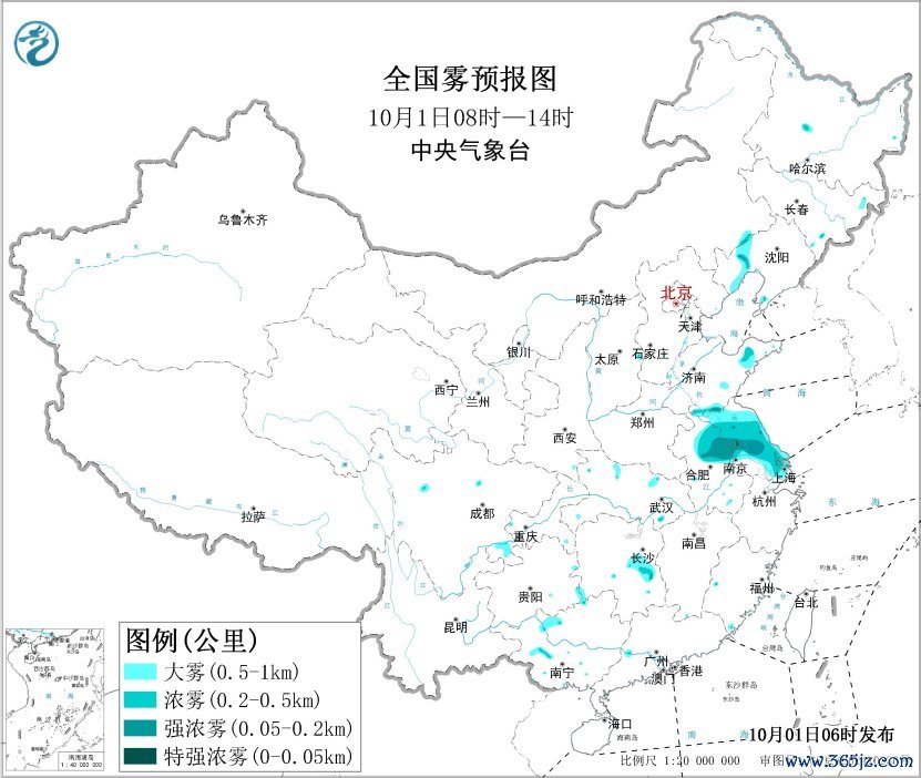 瞻望,10月1日清早至上昼,山东西南部和东部、江苏、安徽东北部、上海、湖南中部、辽宁西部等地的部分地区有大雾,局地有能见度低于200米的强浓雾。中央欢娱台10月1日06时接续发布大雾黄色预警。
