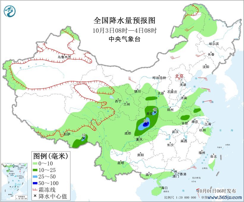 10月3日08时至4日08时云开体育,西藏东南部、陕西中南部、四川盆地东部、湖北西部、苏皖中部等地部分地区有中到大雨,其中,陕西南部、四川盆地东北部等地局部地区有暴雨(50~80毫米)。内蒙古大部、辽东半岛、山东半岛等地部分地区有4~6级风;南海东部等海域将有7~9级、阵风10~11级的大风。