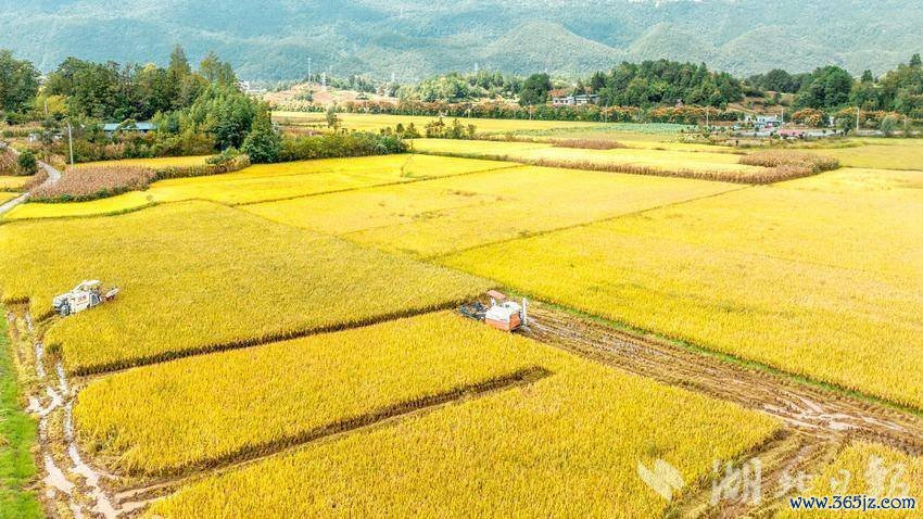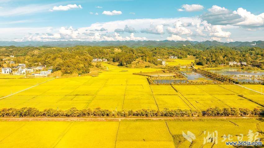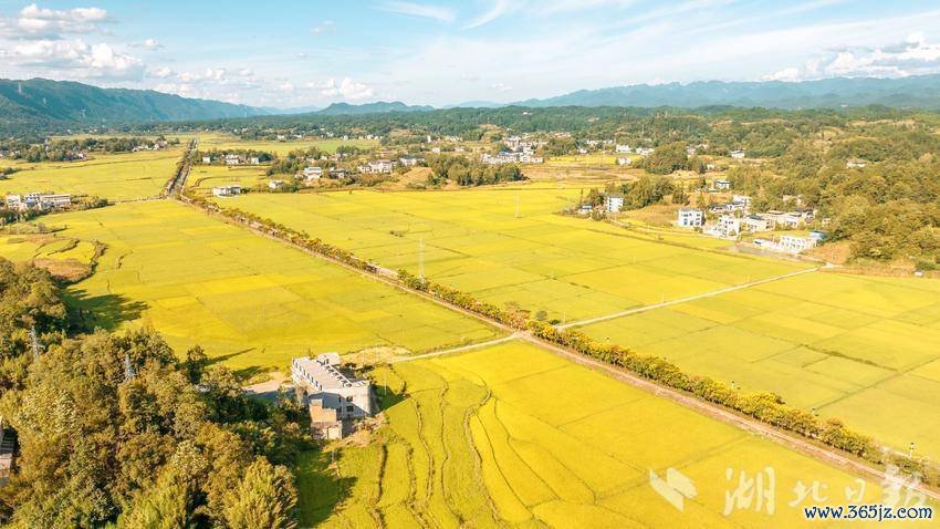 南坪乡地处利中盆地,素有“天府之国”好意思誉。南坪乡是利川水稻培植的中枢区域,培植稻田达3.5万亩,在阳光下翻着海潮,乡村被黄灿灿的稻海包围,一片“地面铺金”的醉东说念主风景。