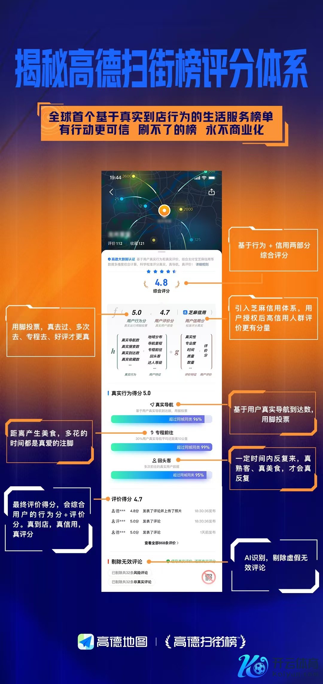 “高德扫街榜”在机制上作念出一系列篡改,酿成了一个很难被“刷榜”作念假的居品。榜单纳入了用户的举止方针,将确切的导航到店步履与评价响应集合,并在获取用户授权后引入支付宝芝麻信用体系,为真实评价加权,幸免了成例榜单容易被刷分、注水的问题。该机制有助于镌汰用户有盘算本钱,同期保险更多作事品性优良的店铺在高德上能被看见,是握续高效眩惑商家和用户的攻击上风开端。